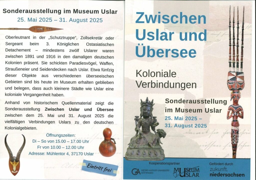 Die Sonderausstellung im Museum Uslar „Zwischen Uslar und Übersee“ ist eine Kooperation zwischen der Georg-August-Universität und dem Museum Uslar, die durch „zukunft niedersachsen“ gefördert wird und vom 25. Mai bis 31. August 2025 zu besichtigen ist.