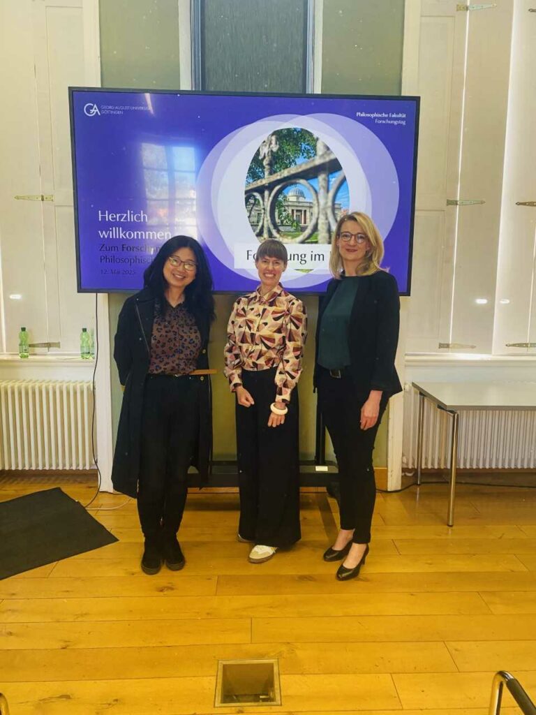 On 12 May 2025, the first Research Day of the Faculty of Arts and Humanities took place to strengthen exchange and cooperation within the faculty. Many SMNG colleagues were also present at the Historical Observatory to find out about current research projects and network with other colleagues. The three newly appointed colleagues from the Faculty of Arts and Humanities, Prof Dr Lill-Ann Körber (Modern Northern European Literature and Cultural Studies), Prof Dr Tao Zhang (Didactics of Chinese) and Prof Dr Kathrin Klausmeier (Didactics of History) presented their respective research profiles in a keynote speech. Prof Dr Klausmeier dealt with historical education and democracy education and pointed out a deficient definition of the relationship.