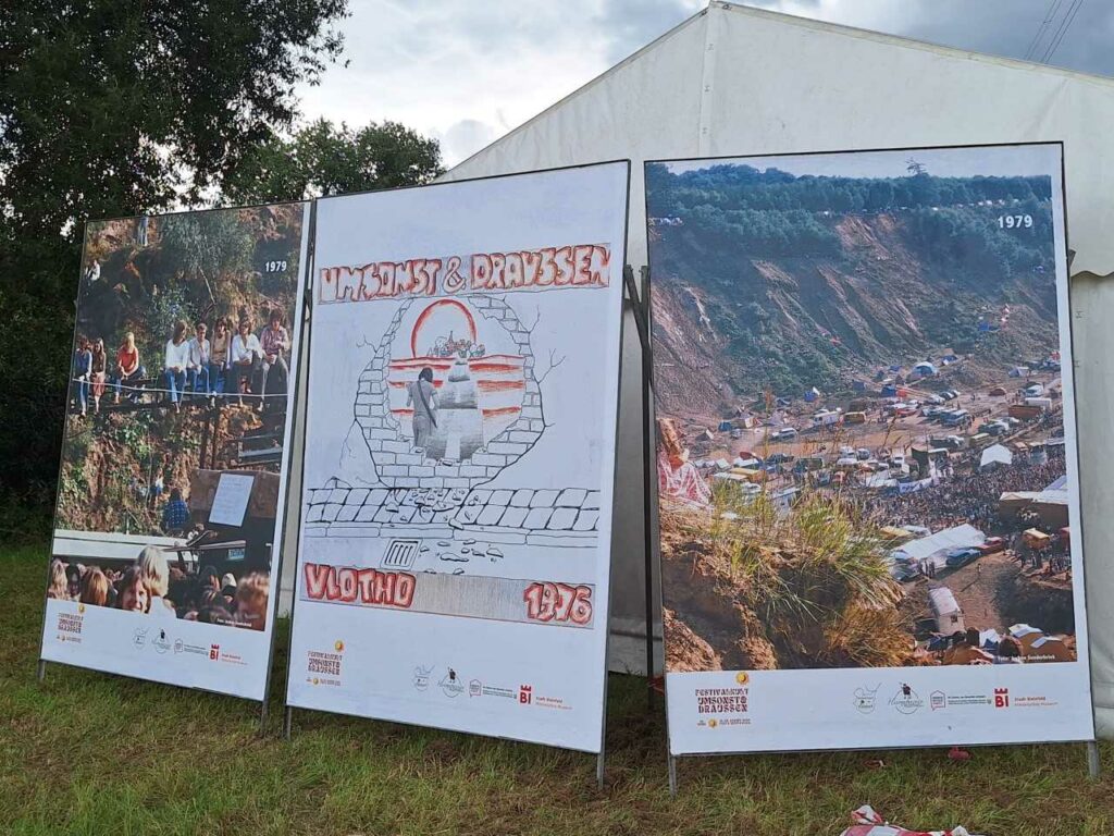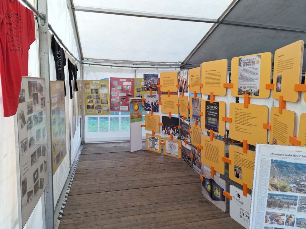 Summertime is festival time, as we all know, and festivals are a great way to recover from the stress of university. Many festivals, such as Wacken and Rock am Ring, have been around for over 40 years, which also makes them exciting from a contemporary history perspective. Even older is the Umsonst & Draußen festival in Vlotho/Porta Westfalica, which turns 50 this year and attracted up to 100,000 people in the late 1970s. The Public History department in Göttingen, in cooperation with the festival, local associations and the Bielefeld Historical Museum, has designed a small exhibition on the history of the festival.